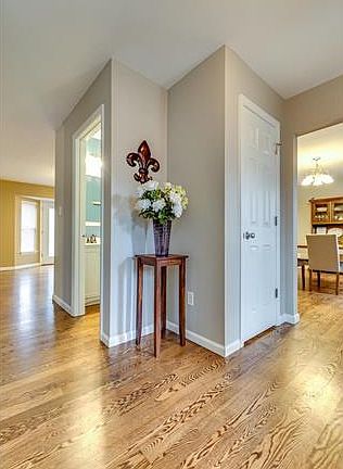 This beautiful home is simply stunning with attention to detail - highlights include 4 beds, 3 baths, new roof on the way, custom kitchen, stainless appliances, pantry, center island, breakfast room, dining room, main floor laundry, "finished in place" oak hardwood floors and gorgeous sunsets from the deck. The spacious master suite has very large walk-in closet & includes double entry doors from bonus room & into master bath. Master bath includes his/hers vanity, corner tub, large shower & lots of natural lighting! All of the bedrooms are very large & some include walk-in closets. The bonus room is a nice upgrade - adds flexibility for office or media area. Lower level is ready to finish to your standards w/rough-in, egress window & ability for walk-out. Other features include oversized garage, corner lot, vinyl fence, a lovely deck & patio overlooking a backyard with beautiful view. Home warranty included. New Roof Coming Soon! No show until Open house Sunday 1/8 at 11:00.