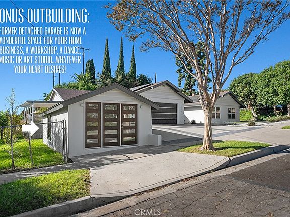 Perched atop one of the Sunny Hills in Fullerton is this classic mid-century, single family home that has been redefined and automated for the most modern and meticulous buyer. Approach the curb and observe the “green” features: the drought-friendly desert landscape, the energy-efficient windows and photovoltaic energy producing solar system (owned, not leased). Take in the beauty of the sleek, solid wood, double entry doors, the smooth stucco finish, and the fresh, coordinating color scheme of the front elevation and hardscape. One structure will be noticeable from the street and pique your curiousity…a 360sqft Bonus structure, replete w/a new AC/heat “split” system, finished insulation and drywall, ceiling fan/lights, new retrofit windows, and double entry doors, and it is ready to become your special place. It could be your business office; a music, dance or art studio; a “she-shed” or a “man cave”; a workshop; an extra recreation room for game tables and lounging…or add a few things and it makes a great guest house or ADU. As you drive home from work, you can turn on the heat or AC, turn on the lights, open your garage door, all with a quick push of a button on an app in your phone. Or while not at home, and your mom arrives early, you can unlock the front entry door to let her in, again, with an app on your phone. And when you retire to your bed, you can use the remote to black-out the window blinds, adjust the thermostat, check the production of your Solar panels, turn off all the lights, confirm the doors are locked, and check all 6 security cameras, all while sitting in your bed. Ring, Nest, August Home, Lutron, MyQ and SolarEdge apps and home internet with mesh extenders are required for everything to operate correctly. There is a unique email address created for the home that will be transferred to buyer for easy onboarding with all these systems. Kitchen appliances are top-of-the-line Bosch Benchmark Series appliances. The all-in-one double oven is a revolutionary Steam Oven on the top, and a “genuine European convection oven” below, assuring the chef that dishes will be moist on the inside and crisp on the outside. The Bosch Microwave Drawer is full-featured and top-rated for it’s smart sensor cooking and quiet touch operation. The Bosch cooktop has heavy duty enameled cast iron grates with dual flame technology for high-efficiency heat dispersion for simmering, boiling or searing. There’s so much more. Come see for yourself, and fall in love.