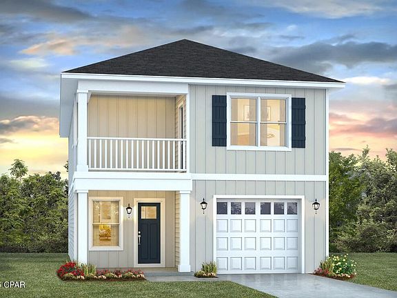 Welcome to the Monroe, a new home floor plan located at Windmark Beach in Port St Joe, Florida. This floor plan features two stories with three bedrooms and two and a half bathrooms. The exterior of this home features a covered front porch on the main level and a covered balcony on the second level just off the primary bedroom. Both have waterviews of two charming ponds in the front and back of the home.