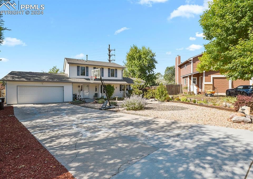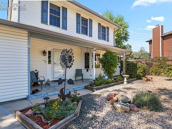 This lovely and spacious home is situated at the end of a peaceful cul-de-sac on a large, beautifully landscaped lot. The property features a low-maintenance fully fenced, park like back yard with a variety of perennial flowers, raspberry bushes, and flourishing fruit trees. Very private with no neighbors directly behind. The kitchen offers a stunning view of Pikes Peak through the window above the sink. It has updated modern appliances, elegant solid surface countertops, a breakfast bar, stylish tile backsplash, and an abundance of custom soft-close drawers and cabinet space with pull-out shelving. Next to the kitchen, there is a conveniently located formal dining area. The main level family room is adjoined by an enclosed sunroom which serves as an extension of the living space and is pre-wired for a hot tub. Besides the two upper and one lower level full baths, there is a conveniently located 1/2 bath on the main level right off the family room. The fantastic partially covered wrap-around deck complete with mountain views, offers an ideal setting for both relaxation and entertainment throughout the year. You'll appreciate the upper-level laundry area which includes top-of-the-line front-loading washer and dryer. The primary bedroom's attached 3/4 bath features a skylight and updated shower surround. The walk-in closet has a window for lots of light. The second family room on the lower level features a wall of built-in shelves for all your media and has a state-of-the-art dehumidifier to maintain optimal comfort. Owners have lovingly maintained this home with updated systems and have made numerous improvements including a recently installed workshop shed and oversized gutters with a leaf guard system. A/C replaced in 2022, Hot Water heater new in 2020. Convenient side AND backyard service doors to the garage. Easy access to AF Academy and all other military bases via I25. Add this home to your must-see list, and your search for the perfect abode will be over.