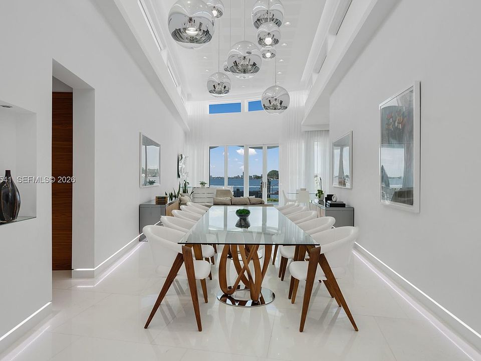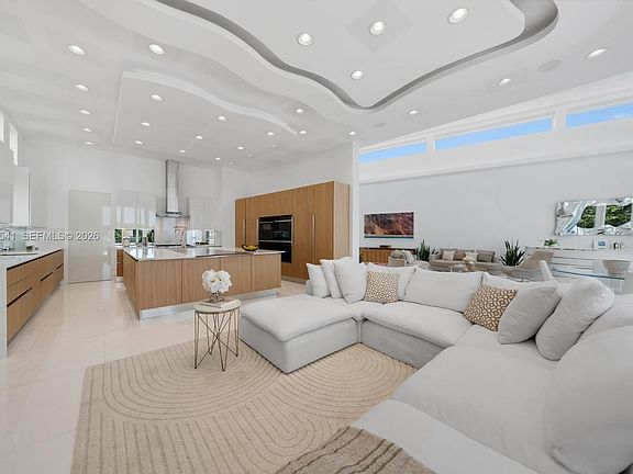 Step Inside With Me! This modern waterfront home on the gated island of Biscayne Point unveils sun-drenched interiors with unobstructed open-bay views. Thoughtfully designed, all social areas and guest spaces are arranged on a single level. Past the foyer, soaring double-height ceilings introduce bright living areas and a sleek specialty bar. The Mia Cucina gourmet kitchen highlights an oversized island with ample storage and boasts Wolf & Sub-Zero appliances. The spacious primary suite enjoys a private setting with a spa-inspired bath and sweeping water views. Outdoors, entertain effortlessly with a Summer Kitchen, infinity pool, hot tub and deep-water dock. Enhanced with advanced security, LED lighting & automation throughout, all just minutes from Bal Harbour, fine dining, & the beach.