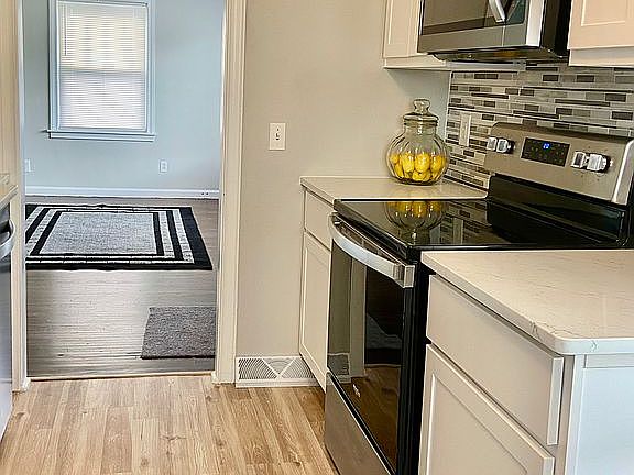 The home has been beautifully remodeled. The kitchen has new whirlpool gold appliances, marble countertops with under mount sink, white cabinets with coordinating silver, grey and white backsplash. The bathroom has been completely remodeled with gorgeous to the ceiling tile in the tub shower combo. The floor tile is white ceramic with grey accents. The dark wood vanity and brushed nickel light complete the modern decor. The furnace and A/C are new along with many other updates. There’s a security system wired in the entire house, along with newer siding and roof. The basement has a home office/ bedroom, large family room, storage and laundry room with washer and dryer.