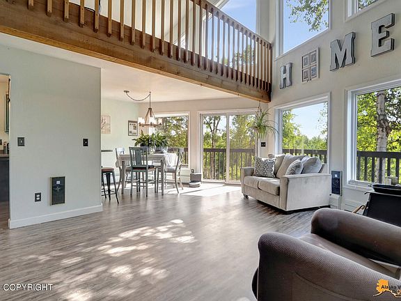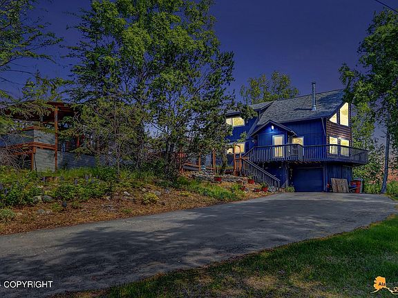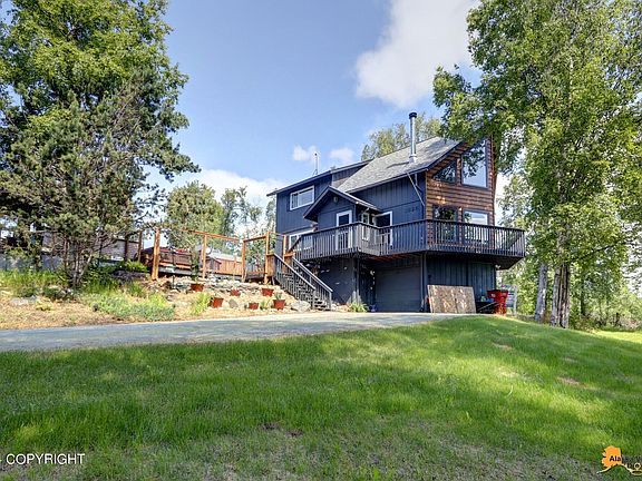 Welcome Home to this wonderful Chalet style home convenient to all the Valley has to offer. Open floorplan with spectacular views of Pioneer Peak, cozy wood stove, lots of natural light, wrap around deck, upstairs master suite, with a loft area that can be used in various ways. Fresh paint, newer flooring, all new Anderson Windows. Outside cooking/entertaining area designed for BBQsyear round.Landscaped yard, large, fenced area for pets, pond with waterfall. This sale includes the adjacent lot .47 acre lot to give you almost a full acre. Seller has a 4.75% assumable VA loan.