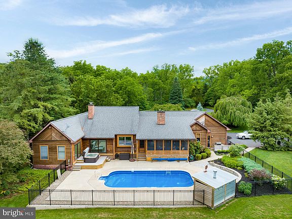Introducing a stunning contemporary property nestled on approximately 3.43 acres of natural beauty. This wonderful home offers a perfect blend of modern elegance and natural serenity. With 2 bedrooms, 3 full bathrooms, and an array of exceptional features, this residence provides a simplistic yet luxurious living experience. Step inside a foyer opening into the sunken living space, adorned with a wood-burning fireplace that creates a cozy ambiance on cool evenings. The open layout seamlessly transitions to a second large living area, ideal for a family room, featuring a charming wood stove. The screened-in porch beckons you to unwind and take in the picturesque views of Mount Nittany, your heated saltwater pool, two person hot tub and backyard oasis. Enjoy the seating area surrounding a gas fire pit, perfect for entertaining or relaxing. Throughout the home, you'll find beautiful hardwood flooring and ceramic tile and an abundance of natural lighting provided by the skylights, adding a touch of sophistication. Both bedrooms have crown moldings and Mitsubishi mini split systems, ensuring comfort in any season. The primary bathroom is a true retreat, boasting a luxurious Thermosol steam shower, heated floors, and a heated towel rack. Its modern design includes concrete vanity tops, and an elongated custom concrete sink. The kitchen was completely remodeled in 2015. It features a delightful breakfast nook with a bow-style of casement windows, filling the space with natural light. The spacious island houses a gas stove and offers ample countertop space with quartz and butcher block surfaces. The outdoor area is truly a sanctuary for nature lovers. In addition to the inviting pool area, there is a wood-burning fire pit, perfect for cozy gatherings and roasting marshmallows under the stars. For those with a green thumb, fenced-in gardening boxes are ready for planting! This contemporary haven is an exceptional property, where modern luxury meets natural tranquility. Don’t miss the chance to make this extraordinary property your own. Listing agent is directly related to seller.
