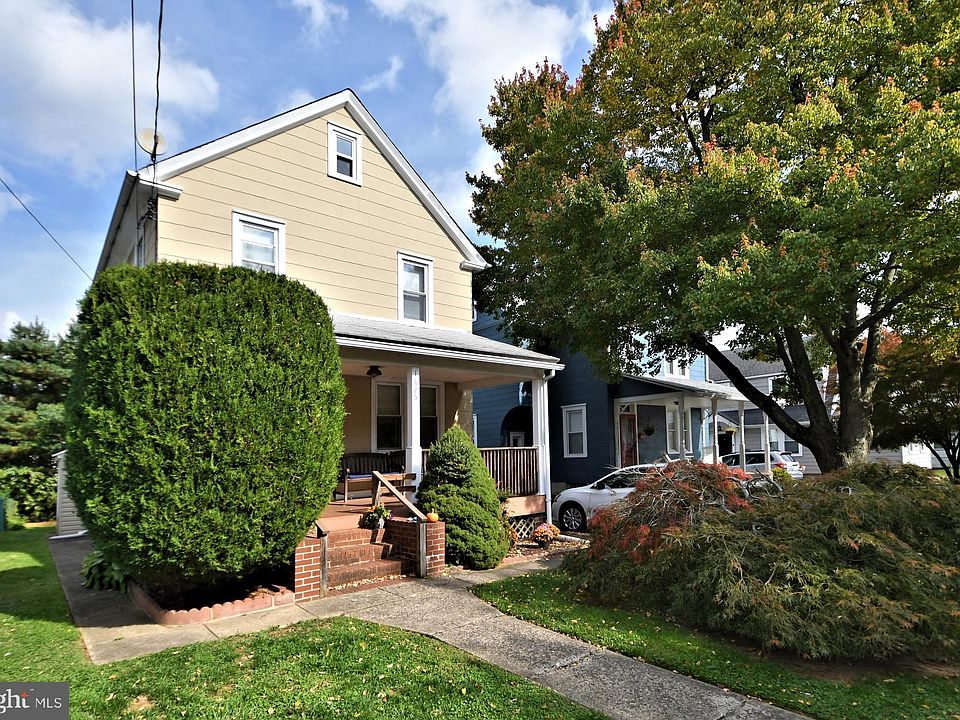 Welcome to this Charming Colonial single home. You are greeted with a large composite front porch and enter into spacious living room and dining room with hardwood flooring. Cozy family room, with powder room with pedestal sink, wood burning stove, and slider leading to deck overlooking fenced rear yard. Quaint kitchen with new disposal, gas cooking, tile back splash, new dishwasher. Upstairs you will find 3 sizable bedrooms , plenty of closet space including a convenient large walk in closet, and a full bath. For tons of extra storage you will find a full basement, with brand new water heater. This wonderful home is conveniently located on a beautiful street with off street parking, close to schools and shopping! Come take a look!