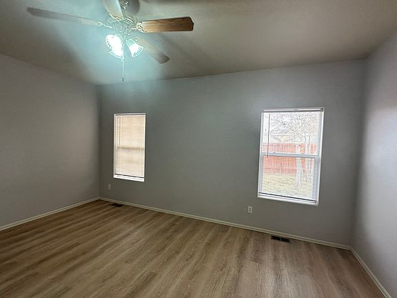 Nice open floor plan with newer easy care laminate flooring throughout. Large primary bedroom with en-suite bathroom including shower and walk-in closet in back of home; two smaller bedrooms in front. Two-car garage with automatic opener. Forced air heating and air conditioning; all appliances including washer/dryer in house. Small backyard, completely fenced, with patio and mature trees and grass. Nice neighborhood with mixture of ages. Tenants pay all utilities. Tenants are strongly urged to obtain renters insurance and to garage vehicles. Lease duration is 11 months to begin. NO SMOKING of any kind inside the house or garage! Tenants are expected to be courteous to neighbors, as this is a townhouse with one common wall. Applicants may text owner but DO NOT CALL.