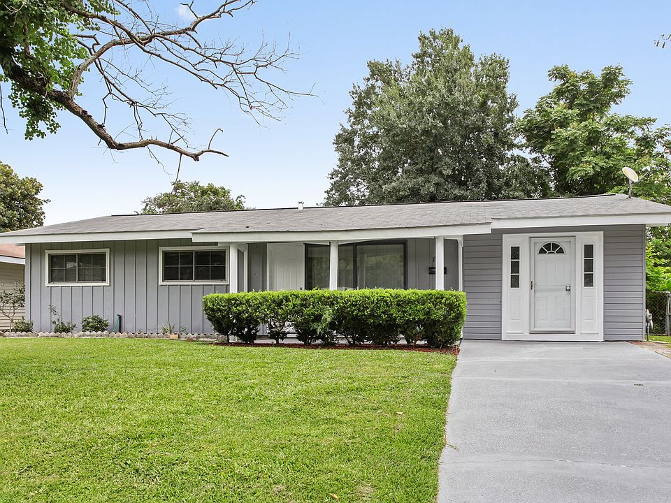Lovely renovated rancher! Airy liv/dining rm combo. Den w/sliding glass doors views front yd. Kit w/all new SS appls, beautiful quartz c-tops, cabinetry & ceramic tile floorg. All new attractive baths, one that is private to the master. All new wiring, laminate floors, doors and trim, recessed lightg and lots of windows invite natural lite throughout. Freshly painted int/ext. 5 yr. old roof! Indoor laundry/storage rm. Screened in porch! Large fenced bkyd. Off st. pkg for 2 cars! Flood Zone X! Move Right In!