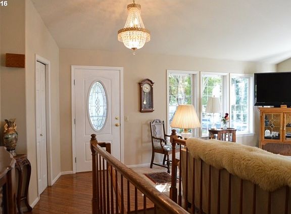 Perfectly private in a park-like setting! Over a quarter acre. Impressive Vaulted ceilings with open plan. Newly Updated kitchen complete w/ Travertine tile floors, & granite counters, vaulted ceiling w/ a cozy nook & bay window. Master suite on main level w/ slider door to the back deck. Good separation of space w/ Family room, 2 more bedrooms on lower level. Updated laundry. Beautiful yard & RV parking.