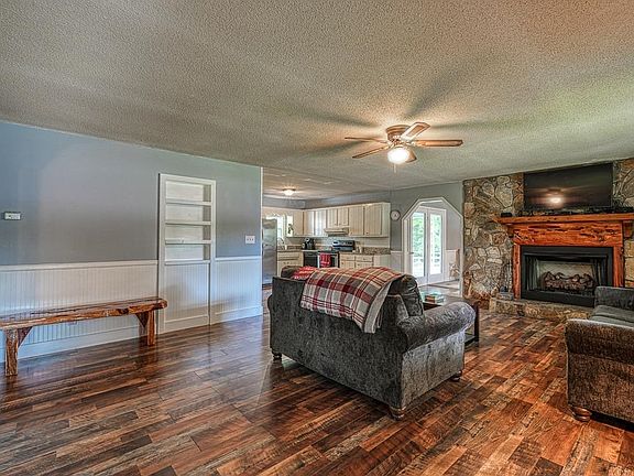 Peaceful 2 bedroom/2 bathroom home with beautiful views located in Pauline. Situated on just over 12 +/- acres, this home features a one car garage and a workshop space separate from the house. When you open up the front door, you are greeted with the living room featuring a fireplace with gas logs and an open floor plan. The kitchen features granite countertops, a dishwasher and an oven. Just off of the kitchen, there is a spacious pantry and laundry area. The master bedroom features a walk-in closet, and a full bathroom. Just past the living room and kitchen, you are welcomed by the dining room which includes glass doors that lead to a spacious screened in porch and even further, a deck. Down the stairs from the deck, there is a space for hanging out with family and friends while looking at the gorgeous view of the spacious land. Make this home your own and schedule a showing today! Gas logs are hooked up to propane tank, and central heat and air runs off separate propane tank. 4 ton HVAC unit in detached garage. Portion of lot to the right of home under trees has a separate septic tank and water. Both storage buildings contain electricity.