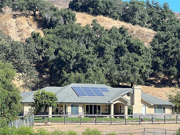 FOR COMP PURPOSES ONLY. NO PROFESSIONAL PICTURES. Gorgeous Ranchita Estates main house and guest house (used to be a barn) on 53 acres with hiking and riding trails. Main house is single-level, built in 1996 with 3 bedrooms and 3 1/2 bathrooms. 3228sf. The home has gorgeous panoramic hill and mountain views, high ceilings, stunning living room with wood beams and moonstone/petrified wood fireplace. Family room with fireplace and French doors that lead to sweet patio that looks out over the pastures and horses. Large dining room great for entertaining and huge enclosed patio area for that open air/el fresco dining feel. Doors to the backyard with beautiful and lush lawn. Kitchen has tile floors, tile countertops, white cabinetry, lots of storage, breakfast bar, and breakfast nook with tons of windows and views. 2 guest bedrooms on the West wing, one en suite. Down the East hall you'll find the primary suite w/ windows that look out over the grape arbor, huge walk-in closet and another attached bonus room that currently works as an office. The guest house is approx. 1300sf, 3 bedroom 1 bath home with great room, lots of custom features like handmade wood countertops, wood beams through the entire home, painted concrete floors and more! The property has a lot of level land and includes pastures, garden, fruit tree orchard, water and electricity throughout, strong artisan well, 2 septic systems, arena and horse washing stall, covered pole barn that would be great for making more horse stalls. It has potential for another dwelling. Connects to the Ranchita Estates Trail System with 100's of acres of riding trails. LEASED SOLAR