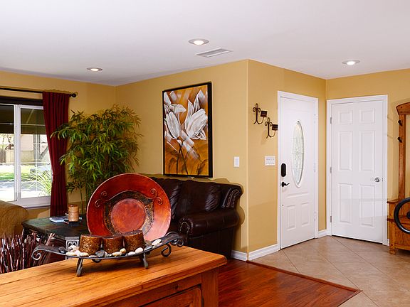 Fantastic opportunity to own this fully remodeled, meticulously maintained, move-in ready single story home in a quiet, friendly, tree-lined neighborhood. The home was remodeled in late 2013. The remodel includes new central AC, ceramic tile and wood laminate flooring, baseboards, doors/frames and interior paint. In this open floor plan kitchen, you will enjoy new cabinets and granite countertops, fixtures, new stainless steel gas range, microwave, dishwasher, refrigerator and sink, along with LED under cabinet lighting. Recessed lighting throughout the home, as well as new plumbing and a cozy fireplace in the living room. The sewer drain was just replaced, in April of 2015, and there are front and back yard clean-out drains. There are new mirrored wardrobe doors in the master bedroom and new closet doors in the other bedrooms. The old popcorn ceilings were scraped/painted, and there is new insulation throughout the remodeled walls. There is a huge custom tile walk-in shower with a granite bench in the master bath, and a new tub in the second bath. Both bathrooms have new toilets, fixtures, mirrors and marble top sinks-vanities. The fourth bedroom was converted to a large interior laundry room, but can be easily re-converted to a fourth bedroom. Original windows and sliding doors have been replaced with dual pane windows. New rain gutters, and a front yard sprinkler system. The new rear sliding glass door has a built-in pet door, but the original beveled sliding glass door stays. There is plenty of room for RV parking, and a large custom built 7’ x 16’ storage shed in the back yard. The finished 2-car garage has epoxy flooring and new custom shelving. The beautiful flagstone porch and gate were added in April of 2015. This home is situated on a 7700 square foot flat lot, with a large back yard for entertaining and plenty of room for a pool! There is a cement pad for a spa off the covered concrete deck, a block wall along the back and one side, and a new wood fence along the other side. There is also an orange tree, a passion fruit vine and an herb/vegetable garden in the back yard. The front and back yards have motion sensor lighting, and the home is protected by a 14-camera interior-exterior surveillance system. This home was very lovingly remodeled by the owners, not just cosmetically as a flip. Some furniture and décor can be negotiated, just ask! This beautiful home is in a terrific location, about five minutes from Old Town Orange and Chapman University, and close to Angel Stadium/Disneyland, with easy access to schools, parks, freeways and shopping.