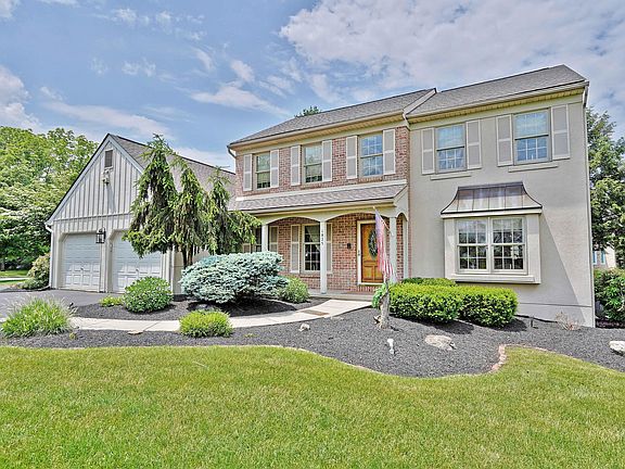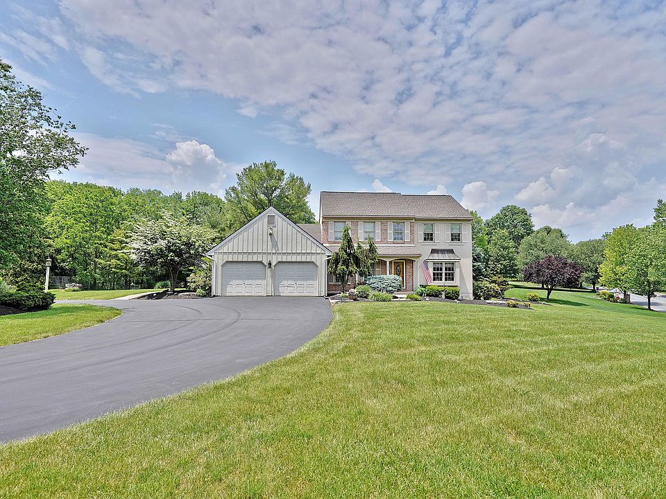 Situated perfectly on a beautiful 3/4 acre corner lot with a circular driveway, this elegant, custom Posocco built home is ready for you to call it home. With over 2700 Sq Ft, this well-kept home features a formal living room & dining room; an eat-in kitchen with tile flooring & counter-tops, glazed maple wood cabinetry, & an eating area with a vaulted ceiling. The 2-story family room has a floor-to-ceiling wood-burning fireplace, double French doors w/ circle top transoms, hardwood floors, & skylights. The private first-floor master suite features a fireplace with propane gas logs, a vaulted ceiling, & a spacious master bath w/ jetted tub. Two bedrooms, full bath, & loft with custom bookshelves complete the 2nd floor. Dual heat pumps were upgraded in 2012, new hot water heater, roof, & skylights in 2019. Perfect for outdoor entertaining on the large deck & screened-in gazebo overlooking the lush landscaping and Gardens. One-year home warranty included. Amazing Location near Lehigh CC.