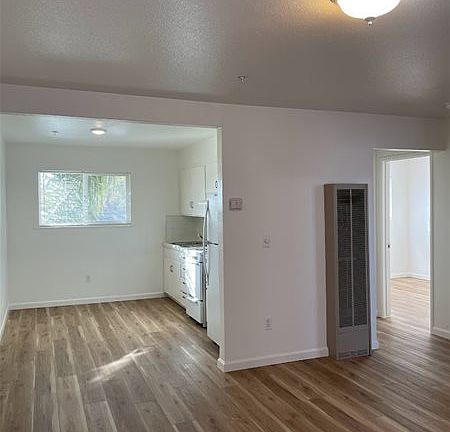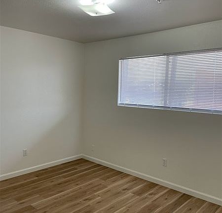 2 bedroom 1 bath upstairs apartment home with approximately 720 SQ. FT. of living space. Kitchen with tile counter tops, laminate flooring, refrigerator and electric range. Spacious bedrooms. Bathroom with shower tub combo. Wall unit for A/C. Gas wall Furnace for heat. Tenant pays $75 per month for water/Sewer/Garbage. 1 car covered carport. Newer interior paint and laminate flooring throughout! *RENTERS INSURANCE REQUIRED WITH $300K.