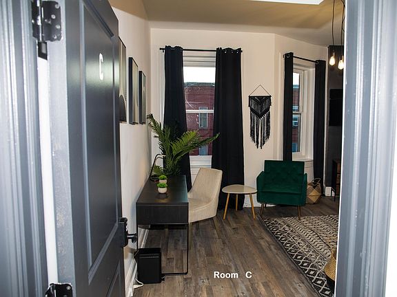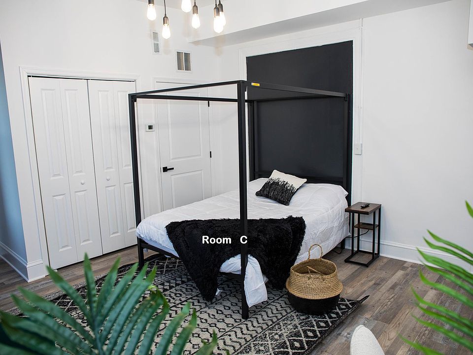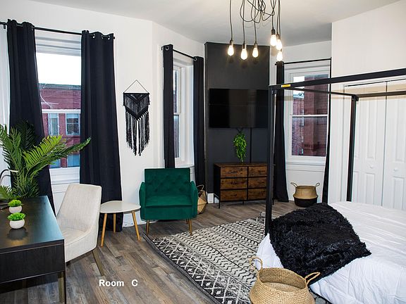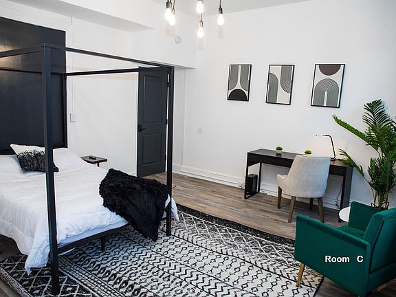 This is a fully furnished room on the third floor of this property. It comes with a shared full bathroom and large kitchen. It comes with a 50" smart TV that is hung and tall windows to give in plenty of sunlight. This unit has been fully remodeled! It has its thermostat to control your own temperature. 90 days minimum Smoking allowed:No