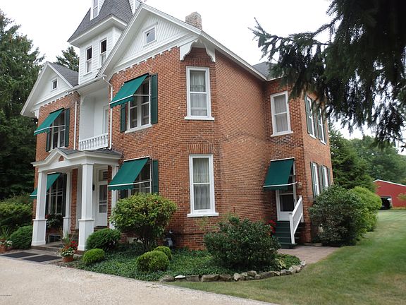 Stunning is the best way to describe this beautiful 1889 Victorian sitting on 5 acres located just outside of Manistee. Driving up to the home you almost get a sense of visiting a southern mansion with the circular drive, the mature trees and a majestic front entrance. This home features 5 bedrooms,formal dining and living rooms 2 full and 2 half baths, den/parlor, original woodwork, newer roof,furnace and electrical. The home features many pocket doors, hand carved woodwork, hardwood floors just to mention a few of the original components of the home. There is an unfinished attic which is large enough for a ball room and there is also a room in the turret. Adding to the features is a large in ground pool, pole barn with horse stalls, a chicken coop and a large garden area.