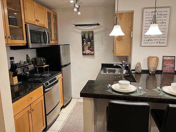 Welcome HOME to this darling, DOWNTOWN 1-bedroom oasis. Nestled in a small, classy, boutique complex in the heart of beautiful downtown Boulder...this darling, fully furnished executive condo suite has it ALL! Newly REMODELED, with designer finishes, you will feel at home the minute you walk in the door. All the creature comforts of home...just bring your suitcase and THRIVE. Enjoy the rare wood-burning fireplace, granite, stainless, HDTV, ceiling fan, adorable courtyard, laundry, & private parking. Tap into your inner chef in your fully stocked kitchen, or BBQ on your grill on your private deck, or sip your morning coffee from your patio furniture and enjoy the Flatirons views! AMAZING LOCATION! No car needed here! Walk or bike to CU, and all the trendy restaurants, pubs, coffee houses, shops, Boulder Outdoor Cinema, the classy 29th St. Mall, Farmer's Market, and FUN Pearl St. Mall festivities. The RTD bus station is down the street to take you anywhere. A block from the beautiful Boulder Creek bike path, and within blocks of amazing mountain hiking! This is the BEST of Downtown Living! Please feel free to contact us with any questions. We look forward to welcoming you to our little corner of the world! :) We offer several lease terms. Please check our lease summary for the current prices and timeframe flexibility to choose what is best for your housing needs! We look forward to welcoming you! :) Zoned for 4 unrelated adults. RHL-00997365 Available NOW. Choose your price by YOUR timeframe... Lease through May 2026 = $2495. per month + utilities. Lease through May 2027 = $2395. per month + utilities. Lease through May 2028 = $2295. per month + utilities. SHORT-TERM: MONTH-to-MONTH Lease = $3995. per month, INCLUDES all utilities. Both MEOWS and WOOFS ARE negotiable here! Must be well-trained and spayed/neutered. Please add $50. per pet, per month.