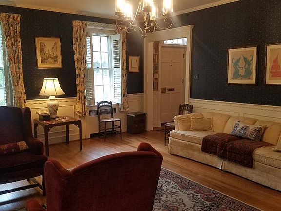 This exquisite American Colonial Stone home is right out of the history books, features large formal living room with marble fireplace, built-in bookcases, beautiful hardwood floors throughout, Formal Dining room w/Crystal Chandelier, Large eat-in kitchen with SS appliances, 4 large bedrooms, remodeled 2 1/2 baths. This home a fairytale backyard w/pond and a quite wooded area all fenced. Walking distance to college, schools, hospital and other conveyances.