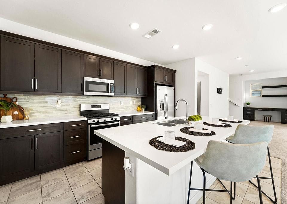 This spacious 4 bedroom, 3.5 bathroom townhome spans 2046 SqFt and boasts a host of modern upgrades, including recessed lighting, a brand new HVAC system, and SOLAR ensuring comfort and convenience year-round. Inside, the spacious layout features a gourmet kitchen with quartz countertops and stainless steel appliances, perfect for culinary enthusiasts. The living area is adorned with natural light and showcases an inviting ambiance ideal for both relaxation and entertaining. The primary suite offers a private retreat with ample closet space and a modern bathroom with soaking tub and stand up shower featuring stylish finishes. Three additional bedrooms provide versatility for guest accommodation, home office space, or hobbies. The large 1 bedroom suite with a full en-suite bathroom and a private patio on the first floor is perfect for in-laws and guests! Enjoy the ease of living with ALL APPLIANCES INCLUDED as well as washer and dryer! Millenia’s UniverCity masterplanned project has broken ground and the new state of the art public library development right down the street expect to be completed at the end of 2024! South Bay’s first ever 4 year university is also planned for this area. Millenia will be a thriving community. Come own a piece of it in this early phase! Hungry? A 2 minute walk will take you to the neighborhood gastropub Common Theory, all you can eat style Korean bbq at Sura, and Casa De Otay for Coffee. Not to mention Starbucks, McDonald’s, Okama, Board & Brew, Jamba Juice, El Viejon Seafood, Pizzos, Luna Grill, La Sobrasito, Hurricane Wings and Grill- the options are ENDLESS! Novo Brazil Brewing at Otay Ranch Town Center has great food, drinks, live music, sport and fight nights events! Garbatella Osteria Bar offers delicious Italian food and live music on the weekends as well. Let’s not forget Kabob Shop, Cheesecake Factory, California’s Pizza Kitchen, ect ect ect!!! In the mood for shopping? Millenia shopping center down the street is where HomeGoods, World Market, Ross, and Michael’s is located. Otay Ranch Mall is where you’ll find Macy’s, H&M, DSW Shoes, Ulta Beauty, Best Buy, Barnes & Noble, Lululemon, and more! Have a sweet tooth? Paris Baguette with their delicious pasties and cakes, Iceskimo for shaved snow ice, and Boba tea at Share Tea! What Are you waiting for?? Come check out this gem! Lowest priced 4 bedroom with over 2000sqft of living space! VA and FHA Approved!