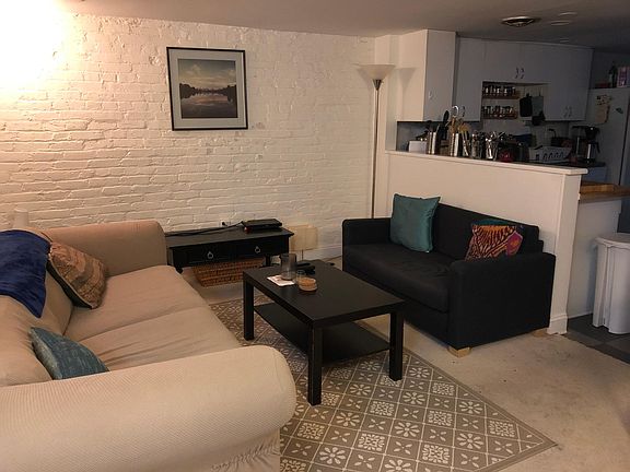 Large basement apartment available in beautiful Mt. Pleasant row house. 2 bedrooms and 1 bathroom. Full kitchen with dishwasher, new stove, dining area. Washer/dryer in unit. Available partially furnished. Access to backyard. Storage area. Great location with easy access to Mt. Pleasant farmers market and restaurants. Rent includes monthly cleaning service. Tenant responsible for water, gas, electric.