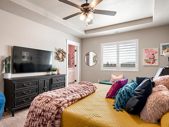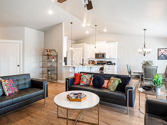 Welcome to this charming and beautifully maintained twin home, where comfort meets style! Featuring 3 spacious bedrooms and 2 full bathrooms, this home boasts an inviting open-concept layout that's perfect for entertaining. You'll love the light and bright color schemes that enhance the open and airy feel throughout. Upgraded shutters adorn the windows, adding a touch of elegance to every room. Step outside to your private, fully fenced backyard oasis, complete with an extra-large concrete patio, lush turf, and a soothing hot tub - the perfect spot to unwind and take in the incredible sunset views.