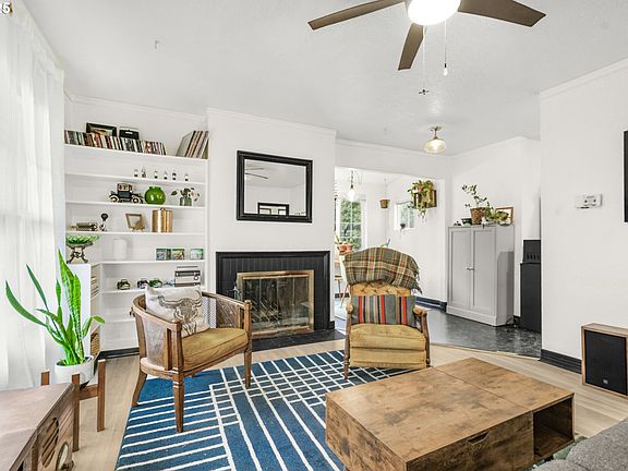 Charming Move-In Ready Bungalow in Woodland Park neighborhood! This beautifully updated home offers the perfect blend of character and modern comfort. On a .14-acre lot with a spacious fenced backyard, this bright and inviting bungalow features a cozy living room with a wood-burning fireplace and built-in shelving. The adjacent dining area has a vaulted ceiling and three large windows, filling the space with natural light. The kitchen offers direct access to the covered back deck, perfect for outdoor entertaining. The main level includes two generous bedrooms and a full bath with a tub/shower. Downstairs, the finished basement provides additional living space with a large family room, two bedrooms, and another full bath making it perfect for family, guests or office space. Enjoy the large backyard, complete with mature shade trees, a tool shed, and space for a garden. Conveniently located minutes from restaurants, parks, shopping, schools, and Adventist Health Hospital, this home also has excellent walk and bike scores with multiple public transportation options nearby. [Home Energy Score = 5. HES Report at https://rpt.greenbuildingregistry.com/hes/OR10236988]