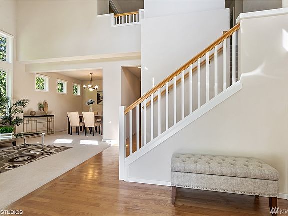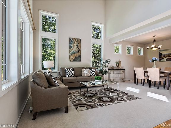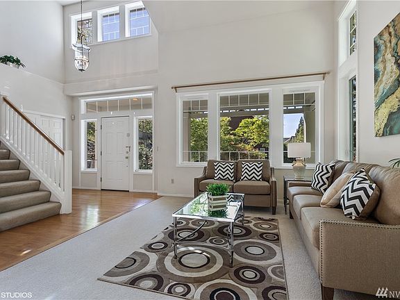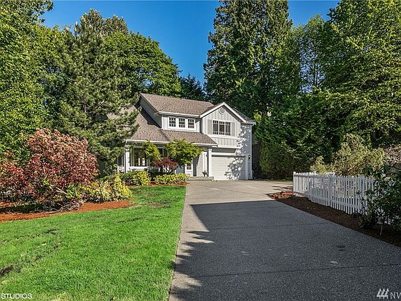 Recently added new Solid Bamboo flooring, new Quartz countertops and new kitchen Appliances. Home features a welcome open entry leading to living room, soaring ceiling, lots of natural light, & peaceful views of greenery from all windows. An office/optional 5br on main. Kitchen with skylight opens to spacious family Rm with gas FPs. Upstairs offers a master BR with 5pc bath + 3 addt'l BR and a build in work station. Covered patio. Minutes to 405, The Landing and restaurants. Walking distance to school!