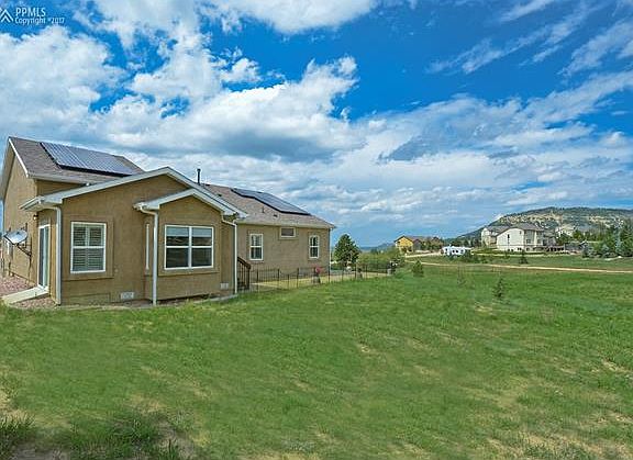 Do not miss this gorgeous home situated on a large lot in the Misty Acres neighborhood of Monument. This home is approximately 25 minutes from DTC and approximately 15 minutes from Colorado Springs. 2 car attached garage with an additional oversized attached garage perfect for your RV! Beautiful mountain views. Inside you are greeted by an open floor plan and an abundance of natural light. This remodeled home offers beautiful updates/finishes throughout. Large master suite with a private 5-piece bathroom and walk-in closet. Spacious, eat-in kitchen finished with matching appliances and a breakfast bar offering additional seating. Masterfully finished basement offers additional living, storage, and entertaining space. Large backyard and a large lot! Electric company buys back the excess at the end of the year. Electric bill is around $35 a month. Solar owned, house runs 800 kilowatts a month and can produce 1100 - 1200 kilowatts a month.