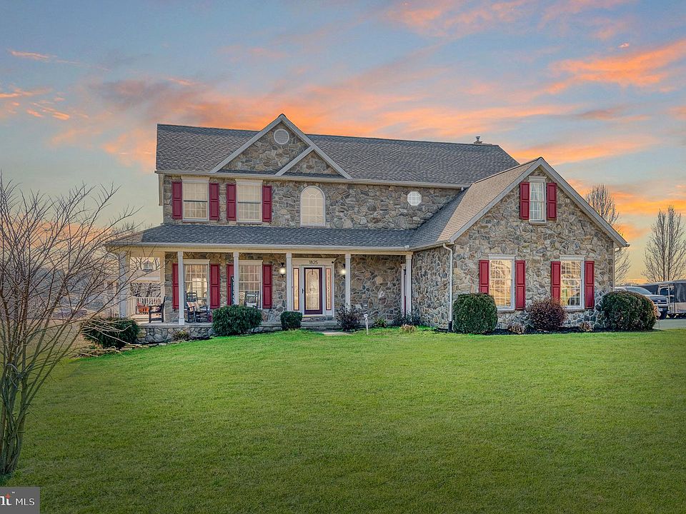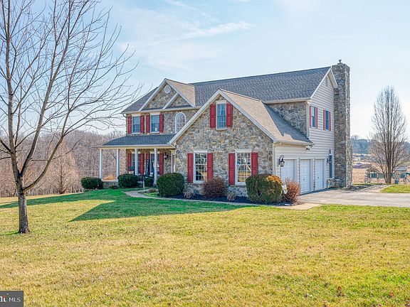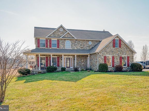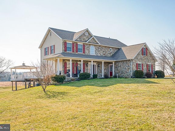 Welcome to 1825 Robinson Mill Road, located in Darlington, Maryland. This classic stone colonial with a large wrap-around front porch and lush green lawns is surrounded by beautiful countryside. As you enter the home, the impressive two-story foyer with the curved staircase and custom molding greet you. Opening into the formal living room and adjoining dining room, both feature gleaming hardwood floors and custom molding and are abundant with natural light. The open kitchen, breakfast area, and family room with a pellet stove are perfect for entertaining. The kitchen features Corian counters, stainless steel appliances, and breathtaking views. Completing the main floor is a laundry/mud room and half bath. The primary bedroom features a full bath with a soaking tub, a separate shower, and dual vanities: two walk-in closets, vaulted ceilings, and a cozy sitting area. The upper level also boasts three more spacious bedrooms and a full bath. The lower level is a blank canvas and ready for you to create the perfect space to meet your needs. Outdoors you will find an 1100-square-foot deck connecting to the front covered porch and a covered sitting area with electricity. A three-car garage, additional parking, a large shed, and a play area are just a bonus. The HVAC system and roof were recently replaced in 2022. All this is situated on 4.17 acres and convenient to local breweries, wineries, creameries, farm stands, orchards, and commuter routes!