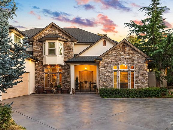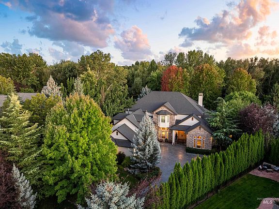 50k Price Drop!!!! Experience refined living along the Boise River! This beautiful Bruno Built home is nestled on over 1/2 an acre right on the river. This stunning residence features an open floor plan with soaring ceilings, expansive windows, and a chef’s kitchen with premium appliances and custom cabinetry. The great room centers around a cozy fireplace and flows seamlessly to outdoor living spaces. The primary suite offers a spa-like bath, walk-in closet, and private patio access with tranquil river views. Additional bedrooms and a versatile office/bonus space provide flexibility for family and guests. Access the upstairs via the custom built staircase or the newly installed Elevator to access the second floor! Outside, enjoy an extended covered patio, lush landscaping, tranquil water feature and the serenity of riverfront living. A three-car garage completes this exceptional property, located just minutes from downtown Eagle, dining, shopping, and the Boise Greenbelt.