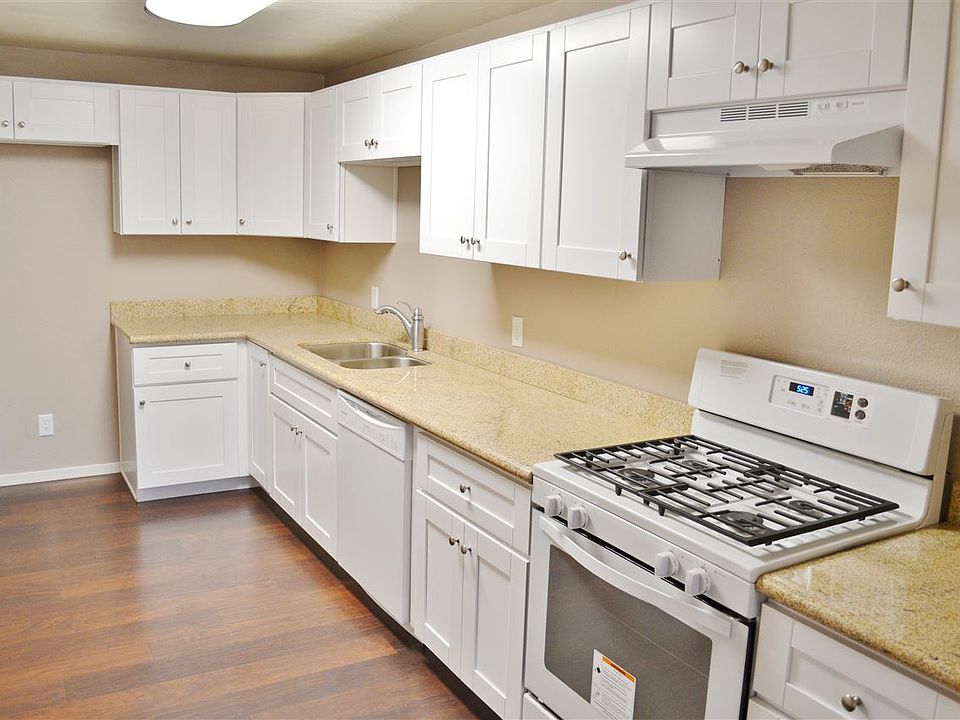 New windows, new wood floors in living, kitchen and dining areas, new ceramic tile in bathrooms, new carpet in bedrooms, new kitchen including granite counter tops, gas range, dishwasher and deep stainless steel sink with a fancy faucet. Master bath with granite, 2 sinks, new tile shower and a walk in closet almost as big as a bedroom. This home is approx 1600 square feet. 4 bedrooms, 1.75 bathroom.