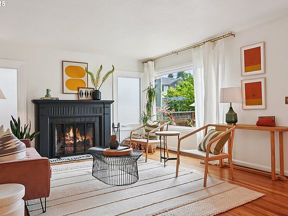 Offer Deadline Set: Tuesday 7/1 @ 2:00pm. Tucked into the beloved Sellwood neighborhood, this charming home blends thoughtful upgrades with timeless character, just blocks from local favorites like parks, restaurants, shops, and schools, and only a mile from the riverfront at Sellwood Park with a Walk Score of 77 and a Bike Score of 94!Step into a beautiful kitchen featuring quartz countertops, designer hardware, tiled walls, open shelving, and playful checkerboard tile floors. New appliances and Rejuvenation lighting and hardware add both function and flair. The bathroom has been refreshed with a retiled shower, a refinished tub, and a new vanity, while the second bedroom features a dreamy one-of-a-kind mural.Major updates bring peace of mind: a full home repipe and new water main, new windows and exterior doors, a new roof on both the house and garage (plus a charming portico!), a heat pump for year-round comfort, and reinforced garage walls. The exterior has been freshly painted, and there’s custom tile around the fireplace for a cozy touch.Outside, the backyard is a private retreat with thoughtful landscaping, a paver patio, pergola, apple and pear trees, a rose garden, mature dogwood, and even a shade garden corner to relax in. A new fence lines the driveway, tying it all together with privacy and security.There is so much flexibilty and potential in the full basement and in the reinforced garage. Think future studio space, office, ADU, workshop, gym, media room, or other additional living or play space. Smart home features include the Nest thermostat, Ring doorbell, and outdoor Ring camera. This home has been lovingly cared for, updated with style and intention, and it's totally move-in ready. Ask for the full features list and schedule a tour today! [Home Energy Score = 1. HES Report at https://rpt.greenbuildingregistry.com/hes/OR10073884]