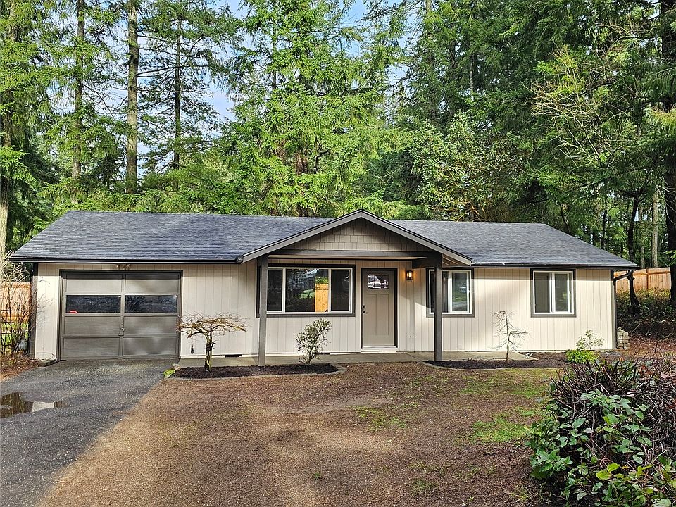 This rambler has just been *beautifully updated! Everything has already been done for you! New roof, all new cabinets with gorgeous quartz countertops, all new flooring, new modern black light and plumbing fixtures, new paint inside and out, new trim and doors, nearly everything! Gas hook up to the range and you could do so much more. Outside is a very large yard with a storage shed and room to grow! Perfectly located in town just a couple minutes from hwy 16 and a little more to the Seattle ferry, yet feels like you're in a quiet suburb!