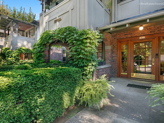 Portland Heights NY style 2 bedroom condo on tree lined street. Prairie Style architecture w/ large covered front porch/patio. New kitchen and bath with heated floors, all new lighting package. Home updates maintain the integrity of original period design. Huge private storage room was used as art studio. Newer boiler and radiant heat. On National Historic Register.