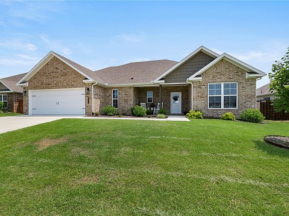 Beautiful 3 bedroom, 2 bath home in Hazelton Heights that's in pristine condition! The home features an upgraded builder trim package including 3cm granite, built-in cubby drop zone, walk-in closets, soaking tub, blinds, and covered front porch. No carpet, easy-to-care-for luxury vinyl plank and tile throughout. Large pantry, gas range, kitchen island, and abundance of natural light. Great split floor plan with a fantastic laundry room. Neighborhood amenities include playground, ballfield, pond, and pavilion. This home qualifies for 100% financing via RD loans yet still 15 minutes to downtown Bentonville! Must see!