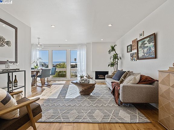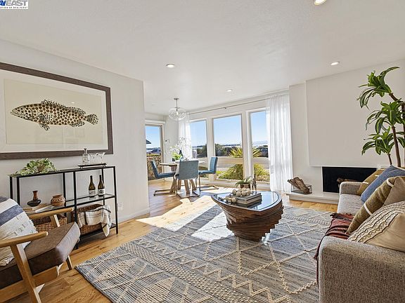 Breathtaking Bay Views! This stylishly remodeled, light-filled Condo is located in the highly coveted mid-century Capri Building across the road from Alameda’s beautiful Crown Beach. Unit 101 is level-in 979 square feet 2 bedroom, 2 full bath retreat uniquely accessible from the popular walking, biking and Bay gazing path of Shoreline Drive. The many wonderful details include, recessed lighting, warm toned wood floors, double paned windows, sleek kitchen/bath cabinetry and tilework, California Closet systems in every closet, Hunter Douglas shades, and more! The Open and Bright living room/dining room is a wonderful place to entertain and unwind while taking in the views of the beach and stunning sunsets. The primary bedroom with en-suite bath with walk-in shower has large windows and Serena and Lily wallpaper. The 2nd bedroom has tranquil Bay Views. The recently remodeled hall bath has shower/tub. The Capri is a well maintained building with large community pool, gated carport parking, and large laundry facility. Location is Prime: close to Southshore Center, Park Street, Schools, Parks and Buses to SF, SF Ferry, and other Transportation. Open House 1/28, 1/29 and 2/5 2-4p.