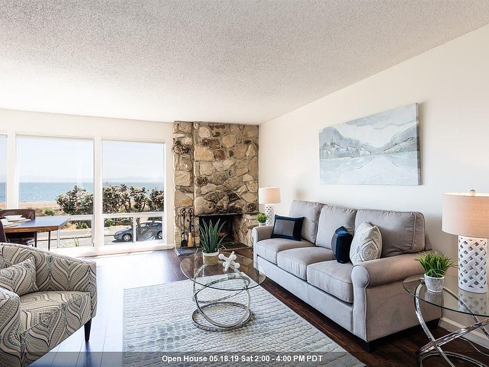 Don't miss this sunlight filled condominium on Alameda's Shoreline drive beach front. Located in the classic Capri condominium complex this second-floor corner unit has wonderful beach floor to ceiling views from the living room, dining area, and front bedroom of the San Francisco Bay and the beach along shoreline drive. The location is across the street from Alameda's Crown Memorial state shoreline beach and a short distance to the Southshore Shopping Center. With 2 bedrooms, two full baths, an updated kitchen with granite counter tops and stainless-steel appliances, engineered hardwood floor, fireplace and a balcony with a waterfront view this unit is perfect for somebody looking for a relaxed low maintenance home. The complex features a secure entrance, private parking, pool and laundry. Units in this complex do not become available very often and ones with views even less frequently so don't miss this one. Open 5/18 & 5/19 2-4 PM