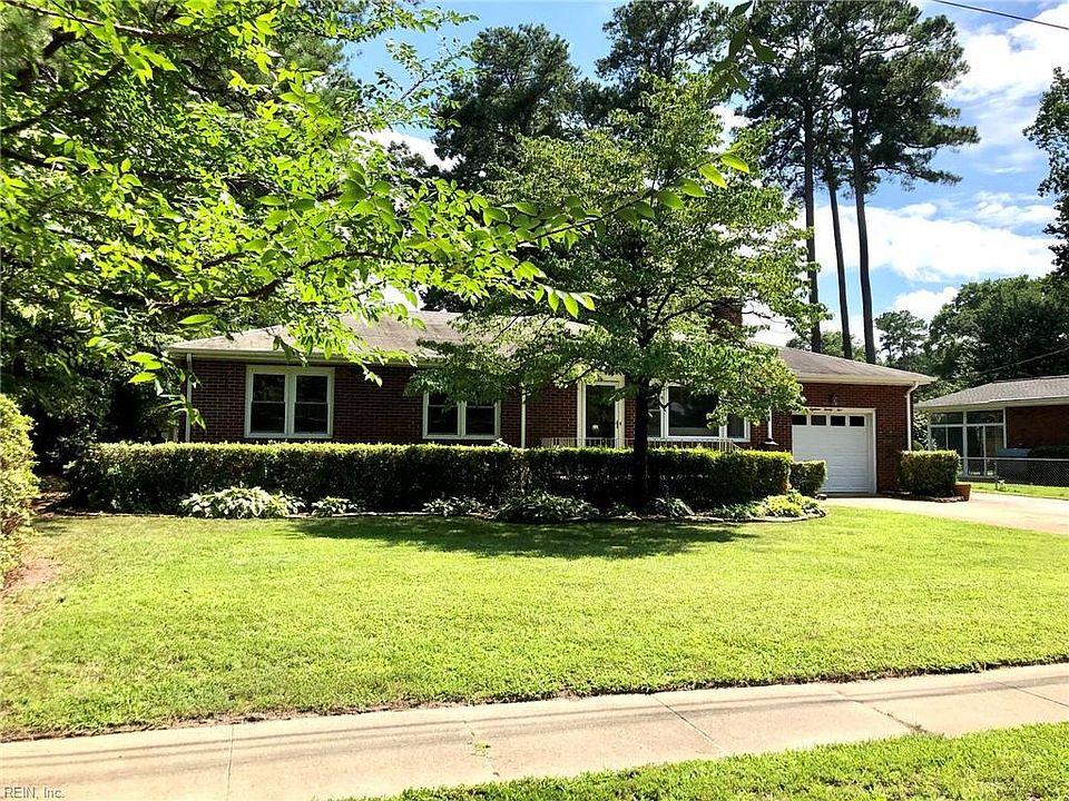 MEADOWBROOK FOREST MAY JUST BE NORFOLK'S BEST KEPT SECRET OF A NEIGHBORHOOD! BEAUTIFUL, TREED, ESTABLISHED NEIGHBORHOOD WITH WIDE STREETS, MANICURED LAWNS AND STROLLIN' SIDEWALKS! THIS ALL-BRICK HOME HAS BEEN WELL CARED FOR BY IT'S LONG-TERM OWNER, AND IT'S EXCELLENT CONDITION SHOWS WITH EVERY STEP. Extra large Living, dining and family rooms, 2 fireplaces, HUGE primary bedroom with very large walk-in + 2 additional closets, plus a sunroom overlooking private back yard and paved patio. Kitchen offers dual wall ovens, cooktop, double sink and the requisite window-over-the-kitchen sink overlooking the back yard. Approx 400 sq ft garage. Hardwoods throughout all living areas, ALL BRICK EXTERIOR, near third-of-an-acre lot. Replacement windows, renovated main bath, just lots of room to spread out! EZ COMMUTE TO ALL MILITARY HUBS, EZ ACCESS TO AIRPORT & I-64. HURRY!