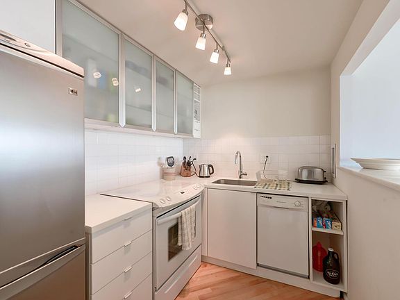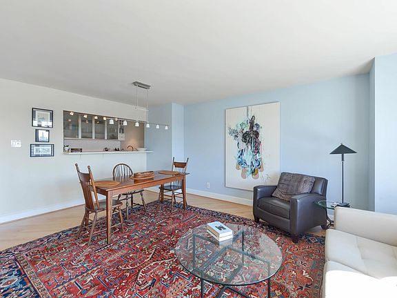 Sun filled penthouse apartment with panoramic city/monument views. This south facing 1 bed/1bath condo on the top floor of a professionally managed boutique building offers the convenience of Dupont Circle, a spacious floor plan with in unit washer/dryer, beautiful hardwood floors throughout, and endless views of the city and its monuments. Enjoy a huge walk-in closet, updated kitchen, and recently renovated public areas. Building also offers bike room and an amazing rooftop deck! Designated garage parking space is also available for rent. No smoking allowed in the unit or in the building. Water, sewer and trash removal are included in the rent. Move in fee of $175 payable to HOA. Cats are allowed.