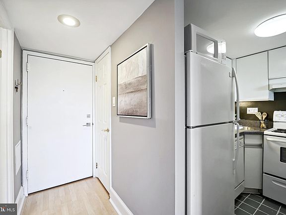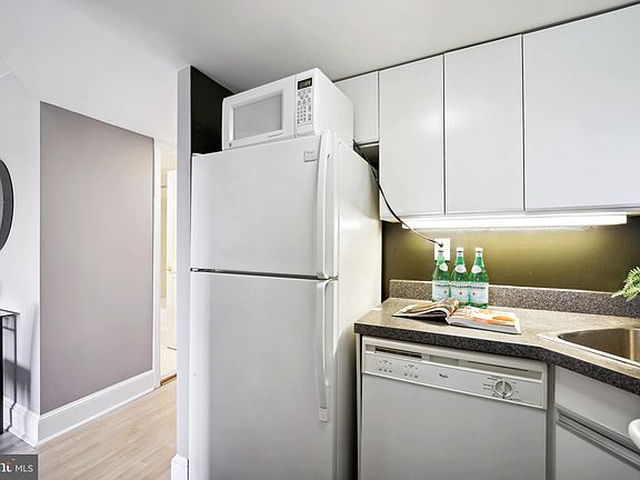 Don't miss this charming penthouse studio condo in the highly sought-after Dupont area, just steps from Dupont Metro and Kalorama. This bright and airy unit features a spacious floor plan and luxury vinyl plank flooring throughout the main living space. The chef's kitchen boasts ample cabinetry with under-cabinet lighting, white appliances, and a pass-through window offering views that extend to the bay window with elevated city views. Enjoy this cozy retreat that cleverly maximizes space and functionality, providing an ideal setting to call home. The main living area is generously sized, accommodating a bed, couch, and breakfast area, with the flexibility to tailor the space to your preferences. A walk-in closet and built-in dresser add to the convenience, perfect for all your organizing needs. The Meredith is a secure building with a welcoming lobby, common laundry room for residents, and an expansive rooftop deck offering community herb garden, seating and stunning views. Assigned parking spot conveys and is on basement level with additional storage units available for rent. Located on a tree lined, quiet street and with a "Walk Score" of 98, this unit is a city lover's dream! Enjoy being just blocks from Dupont Circle Metro (red line), Kramers, Smithsonian National Zoo and countless restaurants and coffee shops.