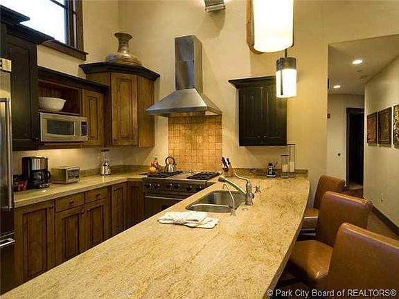 This is it. Literally 15 steps to the Silver Star chair lift; this unit has been claimed as the best in the entire development. Optimal location, privacy, views and over the top upgrades, with no expense spared. Park City living at its absolute best. The main space artfully combines kitchen, dining & indoor/outdoor living areas into an entertainer's dream. The room boasts the perfect combination of hand hewn reclaimed wood flooring with plush carpet, highlighted by a massive stone fireplace. It's all pulled together by gorgeous custom truss work of huge wood beams, raw iron and duct work. A wonderful mountain modern homage to Park City's rich and unique mining history. Timeless. Additional upgrades include a stone fireplace in master, Hammerton light fixtures throughout, air conditioning, water filtration system, humidifer & more.