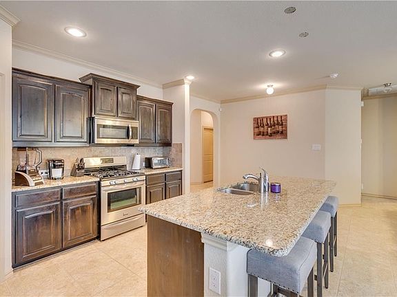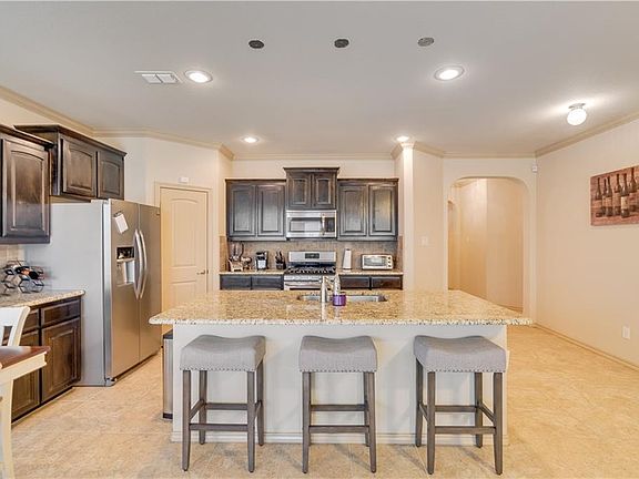Warm and inviting, this meticulously maintained D.R. Horton Carlsbad offers the luxuries of purchasing new without the wait! Carefully selected options and upgrades include custom knotty alder cabinetry, custom two tone paint, energy plus package, and neighborhood beautification package featuring cedar stained fencing and metal posts. The intelligently designed split floor plan offers master suite privacy relative to secondary bedrooms, as well as an open layout for entertaining areas. The entertainer's kitchen features an oversized kitchen island, modern stainless steel appliances, and pre-wired pendant lighting connections. The rear covered patio is the perfect place to enjoy upcoming Spring temperatures!