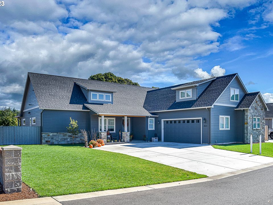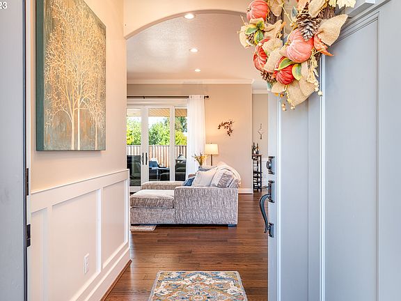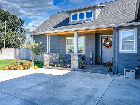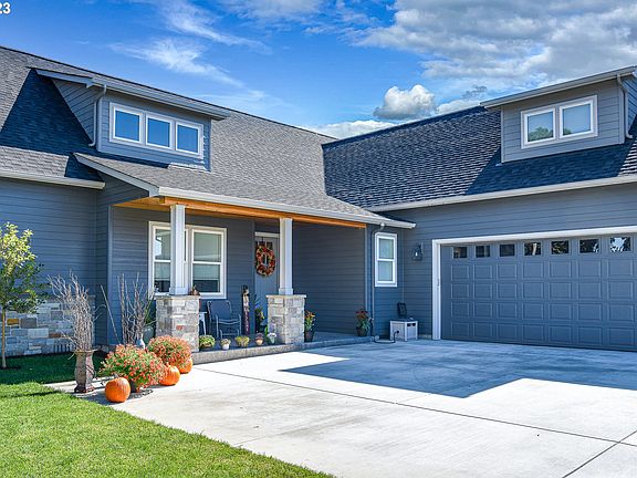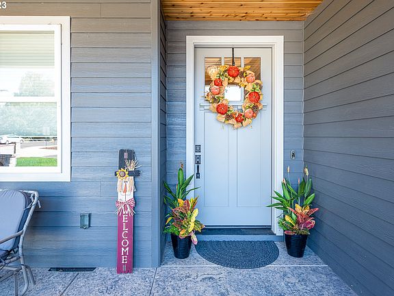Custom-built home in 2022. 2,790 sqft located on a cul de sac! (builders blue print on sqft) masterpiece that seamlessly marries form and function. A testament to quality with exquisite finishes, thoughtfully designed spaces, and an array of amenities. The main level sets the stage w/ 10' ceilings hosting all 4 beds and 2.5 baths, adorned w/ the timeless beauty of hickory hardwood floors, wainscoting, & crown molding. Above the 730sqft garage lies a versatile 498sqft bonus room, offering flexibility for your needs. As you enter the heart of this home an open floor plan bathed in natural light welcomes you, blurring the lines between indoor & outdoor living. To your right, an awe-inspiring kitchen takes center stage; boasting a grand island, quartz counters, farmhouse sink, soft-close hickory uppers & lowers, & a premium GE Café appliance package. The kitchen seamlessly flows into a spacious living area, anchored by a striking stack-stone gas fireplace & entertainment wall. Step through the slider onto the vast stamped concrete patio, tongue & groove pine ceiling carried from the front porch, recessed lighting, built-in kitchen, & hot tub hookups invite year-round relaxation. The back yard features: fire pit area, Xeriscaping, raised beds, potted plants, & meandering paths. Plus an O/S gated RV pad, new large shed. Owner's suite is a private retreat, w/ direct access to the patio, vaulted ceilings, spacious closet, & opulent ensuite bath. This spa-like haven boasts a dual vanity setup w/ glam station, tile floors, & generously sized dual-head shower w/ bench seat. 2 tankless WH (one exclusively for the owner's suite); huge tiled laundry and mud room with ample storage & counter space. Don't miss your chance to experience the pinnacle of luxury living in Junction City. This meticulously designed home offers a lifestyle of unparalleled elegance and comfort. A quality local builder! RV pad side of house has 30 amp receptacle.