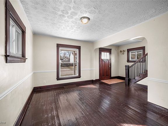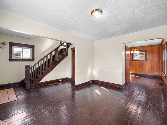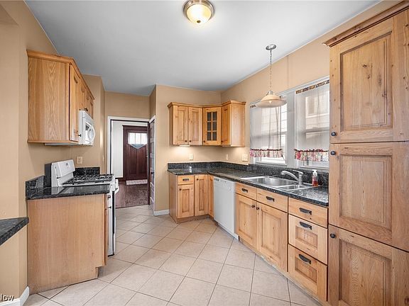 Step onto the charming covered front porch and into a home filled with warmth, character, and timeless beauty. Stunning original woodwork flows throughout, adding a touch of elegance to every room. Sunlight pours into the spacious living room, highlighting the graceful arched entryway that invites you further inside. The kitchen is both stylish and functional, featuring abundant natural-tone cabinetry, sleek dark countertops, a double sink, and all included appliances. It seamlessly opens to the dining area, where a cozy breakfast bar creates the perfect space for entertaining—chat with guests while preparing delicious meals and making lasting memories. A convenient half bath completes the main level. Upstairs, a beautifully crafted staircase leads to three generously sized bedrooms, each offering comfort and charm, along with a well-appointed full bath. The lower level provides a dedicated laundry area and ample storage space. Outside, a detached one-car garage adds extra convenience, and a large yard complete this inviting home that’s ready to welcome its next owners!