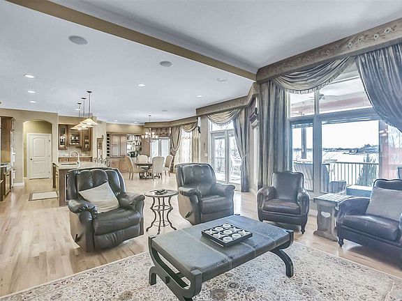 The living is easy at 1825 Harborlight! This impressive, well-proportioned home offers stunning lake views, upgrades upon upgrades, and includes custom dock for pontoon boat and jet ski. The open design of the floor plan coupled with large picture windows provides wonderful natural lighting and perfect entertaining space with views of the water. The floor plan encompasses four spacious bedrooms, 3 full bathrooms and two half baths. Handsome molding and custom built-ins throughout the home offer a sense of quality and luxury you wonât be able to duplicate elsewhere. A roomy kitchen includes a large granite island, walk-in pantry, and more than enough storage space. Nearby built-ins offer a great butlerâs pantry or bar. Your master suite is expansive with access to the deck, beautiful water views, and ensuite bath fit for a King and Queen! The large walk-in closet is a dream along with heated tile floors, his/her vanityâs, tile shower, and large tub. The main floor guest suite offers a full private bath. Within the lower level enjoy custom stained concrete floors, true walk-out access to back yard patios, wet bar, wine cellar, and large family room with room for game tables. Two sizable bedrooms are also featured in the lower level and have quick access to a full bath. Guests can utilize a half bath on the main floor or lower level. There is also a nice office space and mud bench as you enter from the garage all near the laundry room. Finished space under the garage allows for a multitude of options from storage space, media room, or work out room. As you can imagine the outdoor space is a spectacular! Extensive landscaping both in the front yard and back yard, large patio spaces for entertaining and a massive deck to host your guests. An unbeatable value, donât miss your chance here!