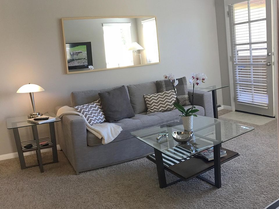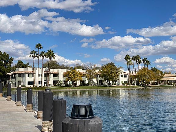 Short term Lease available from April 1st through December 28. 2 months Lease $1695.00 3 or more month's Lease $1585.00/month Beautiful fully furnished one bedroom vacation condo (sleeps two) at the lake community of Lakeshore by Andersen Springs in Chandler is available for the low season! Lush gated community by a lake with master planned community greenbelts for walks. The resort style complex has a well appointed Clubhouse with three swimming pools, pickle ball/tennis courts and and fitness center. Great Chandler location adjacent to the lakeside Boardwalk shops, restaurants, Sprouts grocery store and within walking distance to Fry's. One mile from the 101 Fwy, 10 minutes from INTEL, three miles from Chandler Fashion Mall, 9 miles from Cubs Stadium, 10 miles from Mill Ave shopping district, 15 miles from Sky Harbor Airport. One bedroom one bath balcony second floor condo with a beautiful view of one of the green area gazebos (supplied with a convenient BBQ grill steps away from your kitchen) near the lake, main pool and Clubhouse. The kitchen is outfitted with granite countertops, under cabinet lighting, backsplash and under mounted sink, built in microwave, dishes, pans, crock pot, blender and small appliances. The bathroom has granite counter, glass vessel double vanities and glass shower door. Ceiling fans, custom paint, inside laundry with full size washer and dryer. Nice contemporary furnishings include a 50" wall mounted flat screen TV outfitted with a Roku Streaming Stick in the living room. The bedroom is supplied with a queen bedroom set and a 32" wall mounted flat screen TV, linens (and pool towels) and a computer desk for device charging. Iron and ironing board supplied. Hair dryer and most home conveniences throughout. Complimentary WiFi internet, water, sewer and garbage removal (electric not included and paid separately). Equipped with Roku. Cable TV available. WiFi ready with it's own modem and router. Fully-refundable Security Deposit same as rent. $100.00 non refundable cleaning fee. No smoking and no pets please, the vacation condo is allergy free. Must have good rental history.