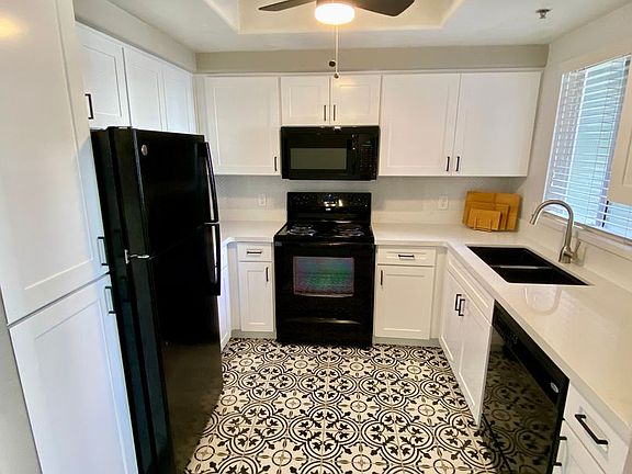 Ground floor unit with community pool just outside your door. This one bedroom, one bathroom unit has fresh paint and flooring throughout. It has a large patio and comes with ceiling fans throughout, refrigerator, range, dishwasher, microwave, full sized washer and dryer and a very large bathroom with a linen closet. Water, sewer, trash and HOA are included in your monthly rent. Unit also comes with a storage closet on the patio. No pets.