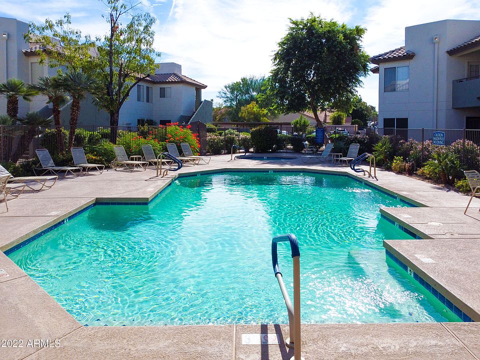 Welcome Home!!! This Gorgeous 2 bedroom 2 bath upper lever unit with amazing views of the lake at the Desirable Lakeshore at Andersen Springs is in a Fantastic location. Close to restaurants, shopping, schools, parks, Chandler Regional Medical Center & easy access to the 101 & 202 Fwy's. You'll love the open concept floor plan of this home. Your kitchen offers black appliances, laminate counter tops, & plenty of cabinetry for storage & organization. Your spacious master suite offers a plethora of natural light, a walk in closet, a vanity & a custom tiled shower/tub combo, as well as direct access to your lake view balcony. This home also offers a wood burning fireplace in the living room, a storage room on the balcony, covered parking & 2'' blinds for your privacy. This gated community offers 3 sparkling pools to relax in & enjoy, 2 Ramada's with BBQ's, a fitness center, tennis court, clubhouse, as well as lake to take a leisurely stroll around or cast that line out to catch the big one!