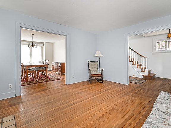 Well built and maintained brick home with tons of character and charm ready for your personal decorative touches. Large covered front porch with awnings. Home features large stately entry, stained glass windows, original hardwood flooring, wood banister, high ceilings, wide cove base and glass door handles throughout. Generous sized living room with gas log fireplace flanked by stained glass windows. Huge dining room boasts stained glass windows and large picture window with window seat. The fully equipped eat in kitchen has access to level back yard and detached garage. Second level with four generous sized bedrooms all accompanied with overhead lighting and large hallway with linen closet. Newer roof and mechanics. The large clean basement has high ceilings and two storage rooms and can easily be finished. Perfect location 5 minutes to Bellevue shopping and dining district. Quick access to Bright Giant Eagle, Riverview Park, Route 19 and 65, McKnight Road, Northshore and Downtown.
