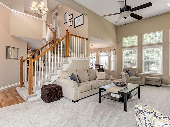 Fantastic 2-story with TONS of windows & natural light. Large great room with fireplace and high ceilings. Kitchen has oodles of cabinets plus island. Step outside onto the deck for backyard BBQ's, games or just relaxing at the end of the day. Upstairs you'll find a spacious master with double closets and ensuite bath with double sinks, shower and soaker tub. Generous bedrooms with walk-in closets. Recent updates includes carpet, exterior paint, carpet, floors in mstr bath and deck stained 2019.