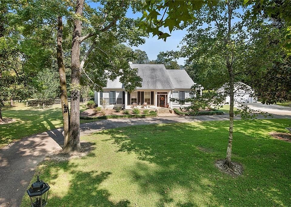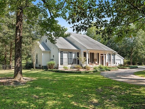 Custom acadian cottage only minutes from Covington. Quiet, peaceful location where you can relax on the back porch or take a dip in the heated pool or spa! Impeccably maintained w/ a great floor plan, spacious rooms & abundant storage. Detached garage w/ half bath plus a separate workshop constructed to allow tailgate loading/unloading from a pick-up truck. Home has whole house generator, Insulated back patio cover, swimming pool features Nature 2 system for ease of maintenance. Working shutters.